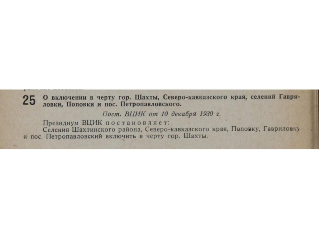 1930 год, 10 декабря. Эту дату вы вряд ли найдете в изданиях об истории нашего города. Именно в этом году, наконец, Поповка вошла в состав города Шахты. Разрастаясь, город дошел своими границами к хутору, построив рядом шахту им.Красина с одноименным поселком.