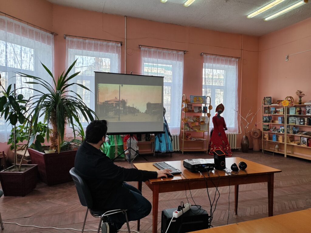 Краеведы в рамках доклада сопредседателя клуба Дениса Андреевича Белаша изучили старинную фотографию проспекта Большого.