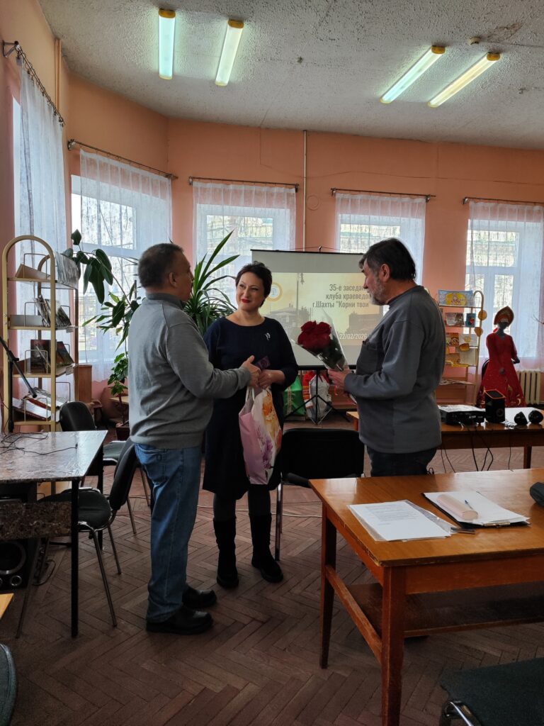 В этот день звучали тёплые поздравления в адрес сопредседателя клуба, внештатного корреспондента газеты «К вашим услугам», неутомимого исследователя и автора книг «Вокруг грушевских балок и круч», «Загадки Александровска-Грушевского» — Зайцевой Александры Сергеевны, отметившей свой юбилей.